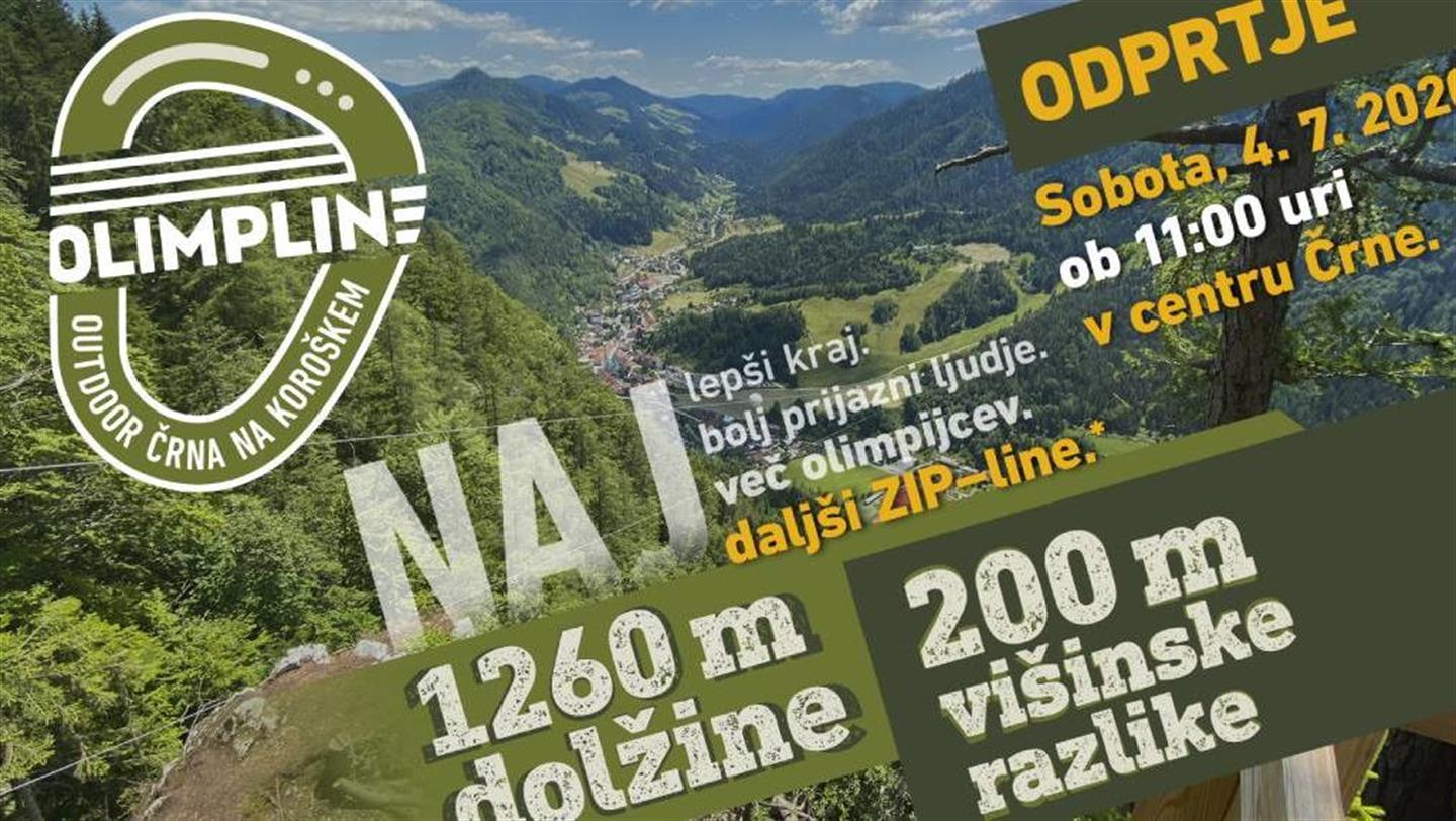 In Črna na Koroškem können adrenalinbegeisterte BesucherInnen auf der längsten Stahlseilrutsche Sloweniens, der Olimpline dahingleiten. Die Stahlseilrutsche verläuft vom Gipfel Navrški vrh zur gegenüberliegenden Seite von Črna, nahe dem Skizentrum und dem Bauernhof Kogelnik.