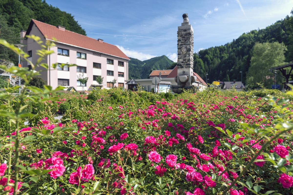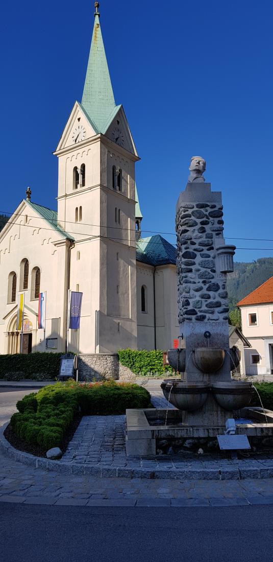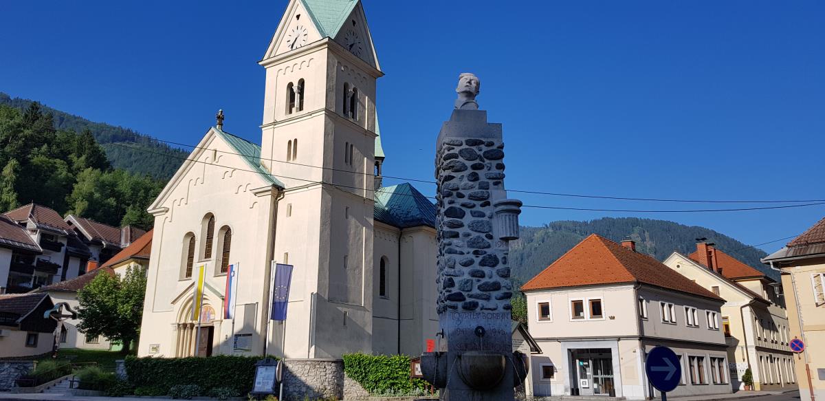 V samem središču Črne na Koroškem stoji šest metrov visok spomenik, ki ga ni mogoče spregledati. Njegova preprosta, a hkrati monumentalna oblika pritegne pogled vsakogar, ki vstopi v kraj – in opominja na preteklost, ki se je ni mogoče izogniti.
