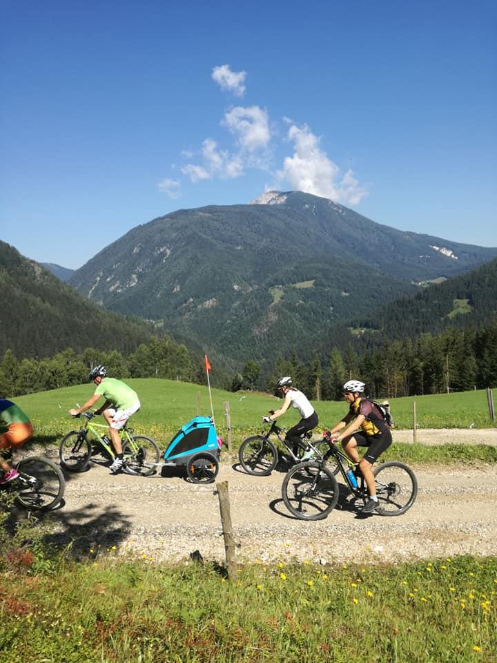 Tu gremo naravnost in se spustimo po makadamski cesti. Po daljšem spustu se pripeljemo do glavne asfaltne ceste, kjer zavijemo levo do izhodišča.
