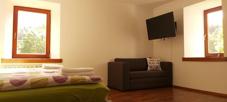 Dostop do nastanitve ni primeren za nizka športna vozila, saj pelje pot skozi gozd.
