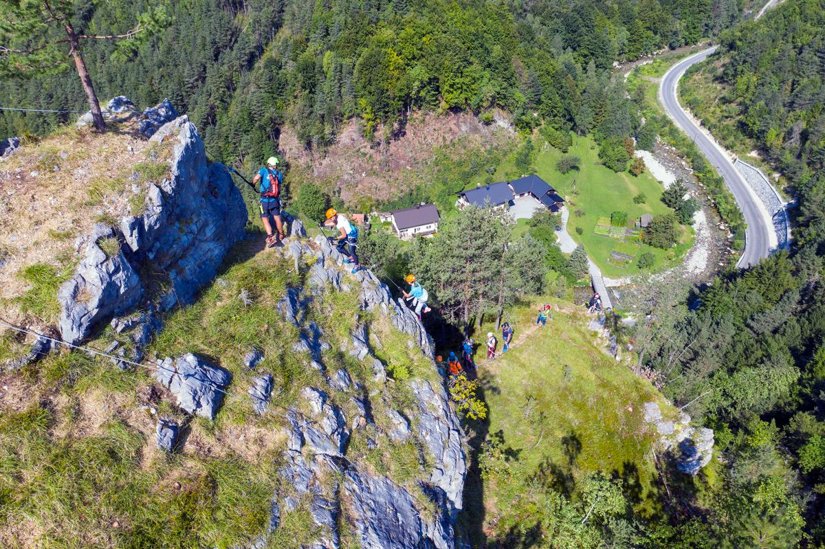 OPOZORILO: za obe ferati velja, da je njun spodnji del, ki poteka po soteski v mokrih oz. vlažnih razmerah še težji. Zato priporočamo obisk ferate v suhem vremenu. V zgornjem delu večjih težav z vlago ni pričakovati.
